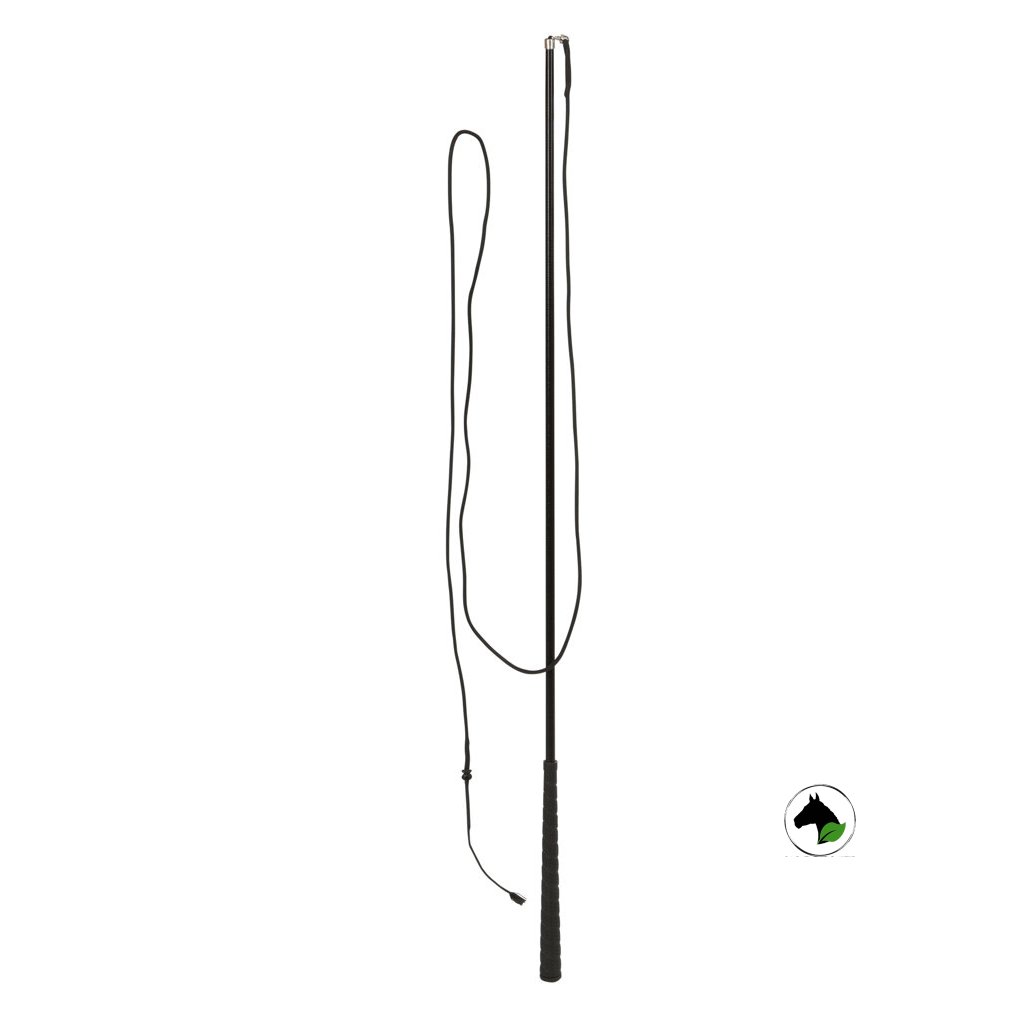 Lonžovací bič ze sklolaminátu opletený nylonem. Bič má neklouzavou rukojeť.