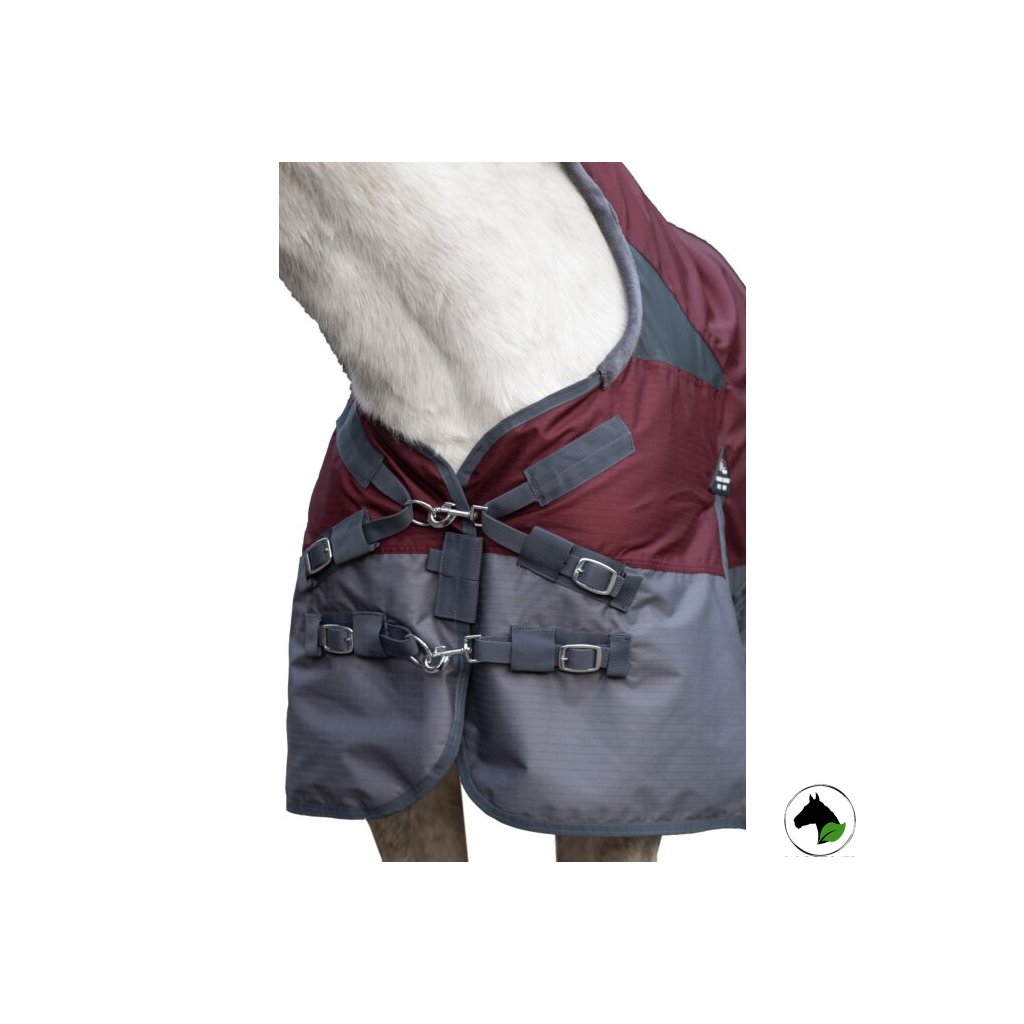 Deka je díky svému materiálu vysoce vodoodpudivá, má inovativní zapínání na prsou, křížové zapínání pod břichem, které brání přetočení deky, popruhy mezi zadní nohy, chránič ocasu a popruh pod ocas.