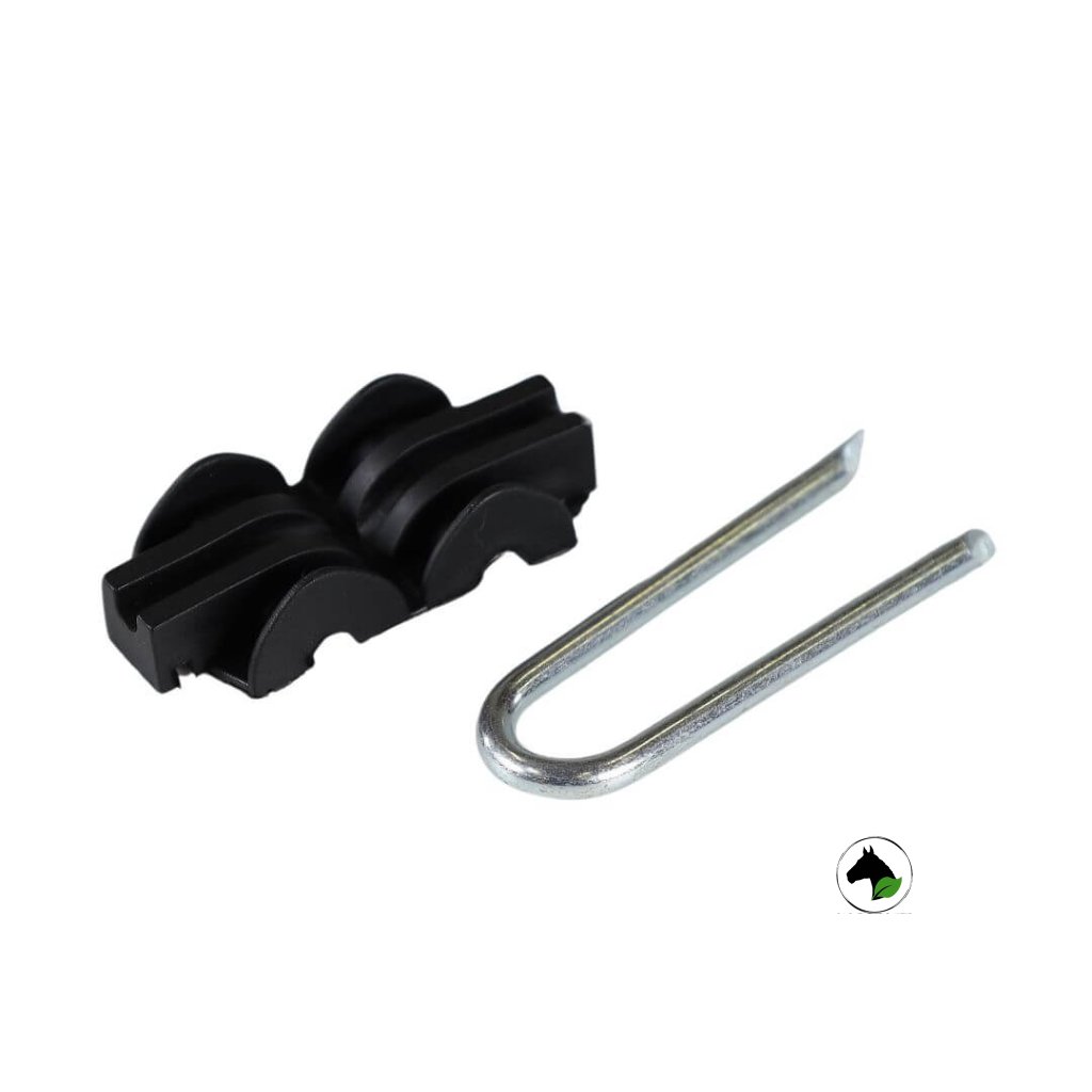 Praktický průběžný izolátor se skobičkou pro elektrický ohradník. Vlastnosti plastového izolátoru se skobou: Upevnění do kůlů pomocí ocelové pozinkované skobičky 50 × 3 mm Vhodné pro hliníkové lanko a ocelový drát pro elektrický ohradník Také pro lanko pro elektrický ohradník do 3 mm Rozměry izolátoru 18 × 16 × 21 mm Vysoká UV odolnostDoplňkové parametry