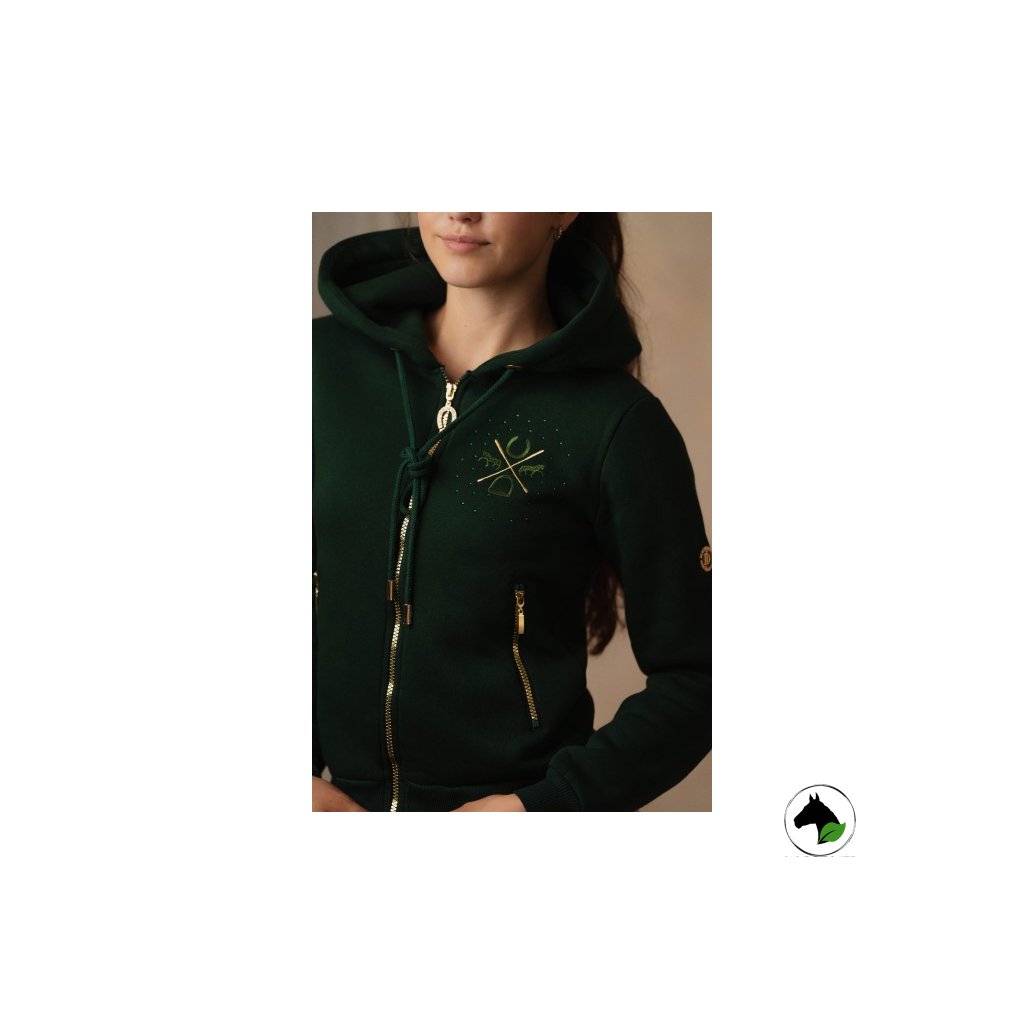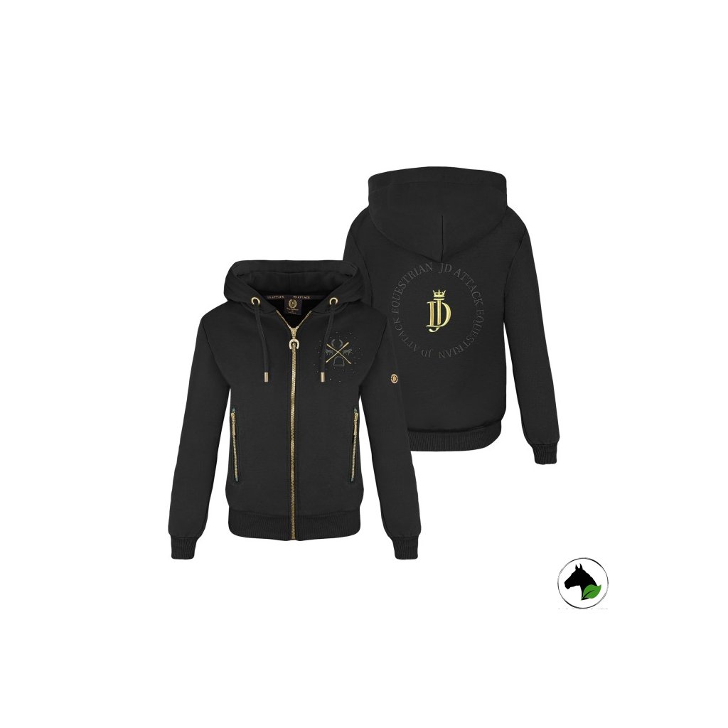 Dámská mikina JD ATTACK Holly je jedinečný model navržený pro jezdecké nadšence, kteří oceňují eleganci i pohodlí. Mikina na zip je vybavena praktickými kapsami na zip a výrazným dekorativním logem, které jí dodává originální sportovní styl.