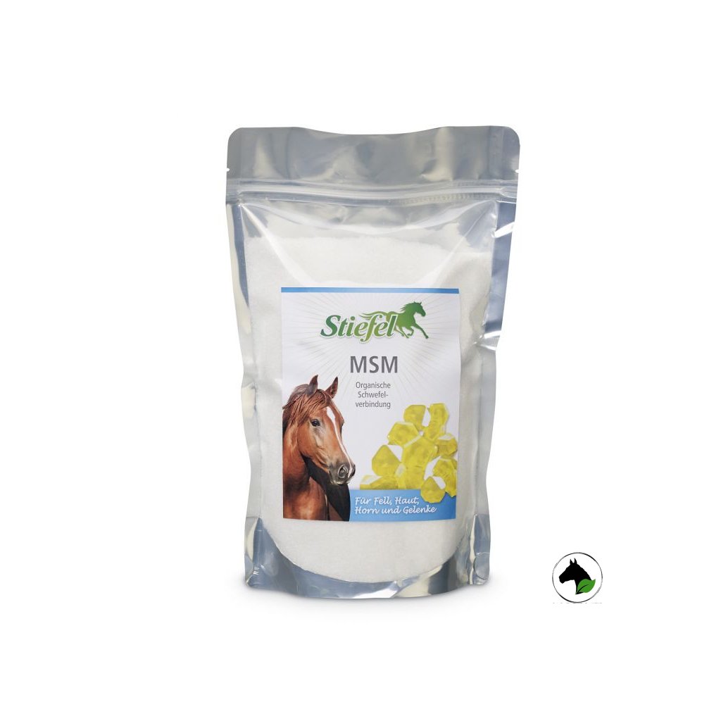 Obsahuje 99,99% ultra čistého methylsulfonylmethenu (MSM). MSM je biologickým zdrojem organicky vázané a tím metabolicky lehce dostupné síry, nezbytné k syntéze kolagenu. Ta může podpořit obnovení a zachování správné funkce kloubů, chrupavek a kůže. Tento přírodní antioxidant může i tišit bolest a otoky způsobené artrotickými změnami v kloubech. Velmi dobře může působit také při hojení poškozené pokožky a podporovat růst nové srsti. Zejména u koní postižených letní vyrážkou je doporučován k zařazení do krmné dávky. Také u koní s problematickou rohovinou kopyt lze MSM doporučit.