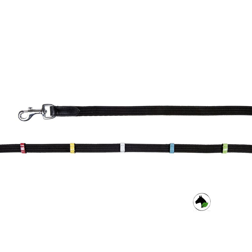 Otěže s barevnými smyčkami spojují kvalitní kůži s praktickými karabinami, které umožňují rychlé a snadné zapínání. Díky provedení z odolného materiálu jsou pevné a spolehlivé, a barevné smyčky přidávají stylový vzhled. Ideální volba pro každodenní ježdění, trénink i soutěže.