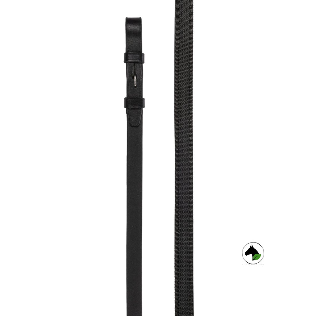 Kožené boční otěže s elastickou vložkou – pevné, pružné a pohodlné. Karabiny pro snadné zapnutí, stříbrné doplňky dodávají elegantní vzhled. Ideální pro trénink i soutěže.