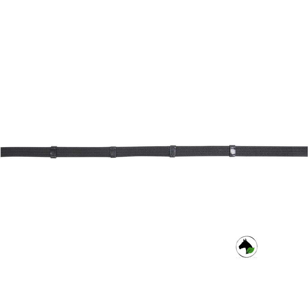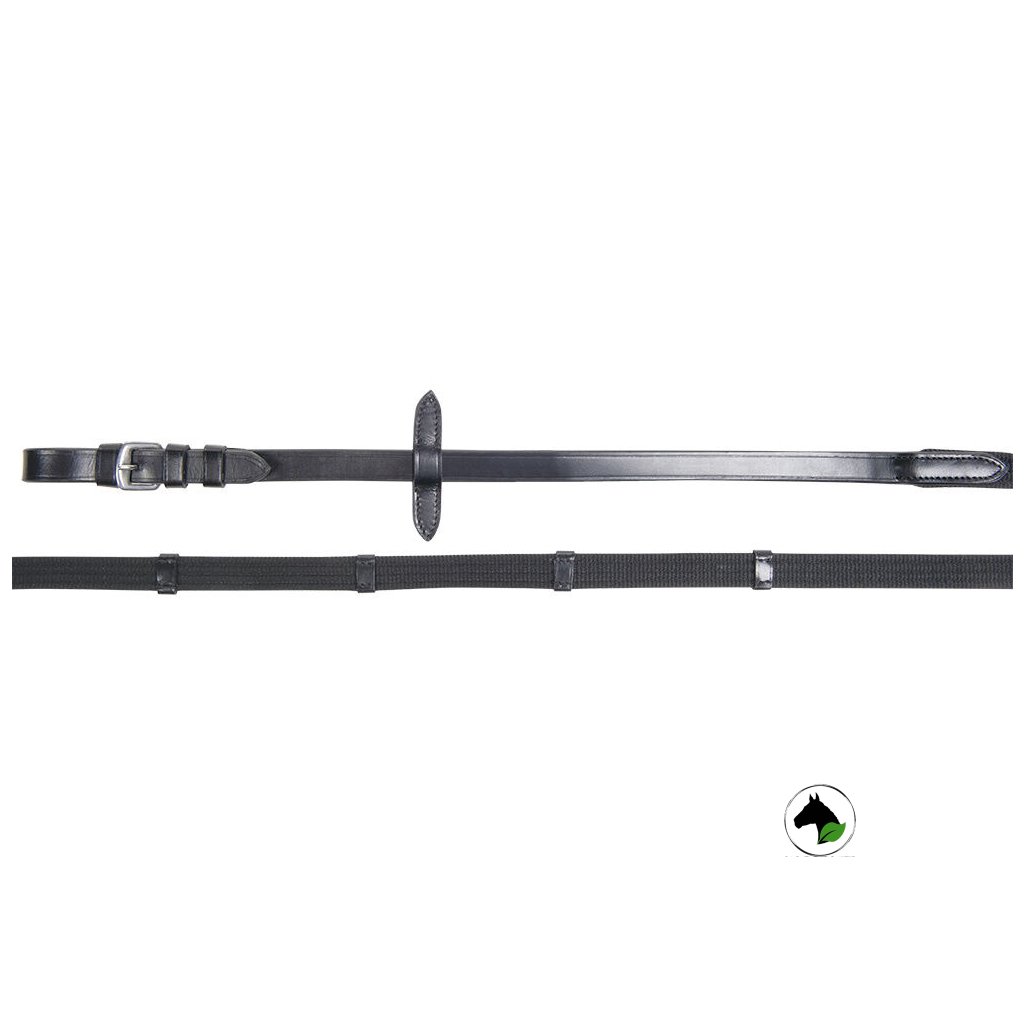 Otěže tkané s gumou kombinují odolnost a pohodlí při ježdění. Pevné nerezové přezky zajišťují dlouhou životnost a spolehlivost, zatímco kožené zarážky poskytují jistý úchop a pohodlí v ruce. Ideální volba pro každodenní trénink i soutěže.