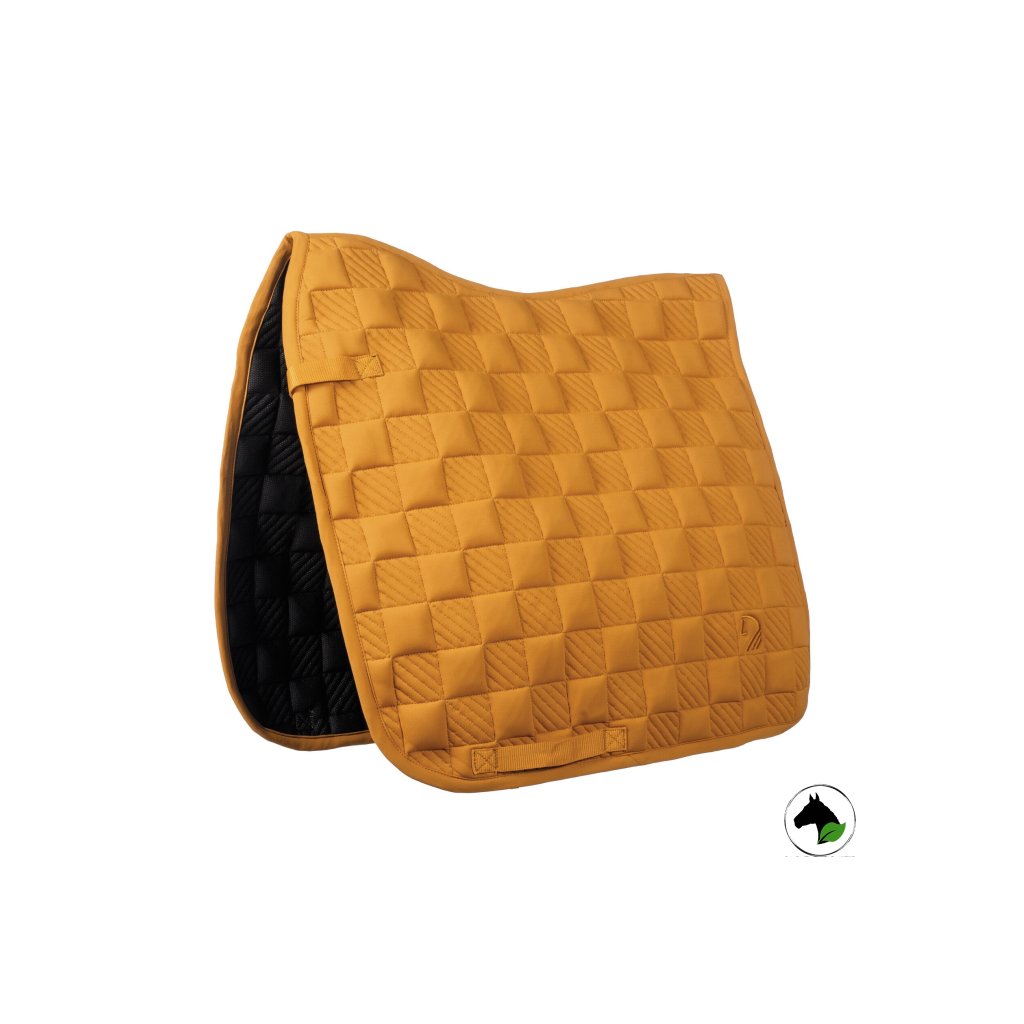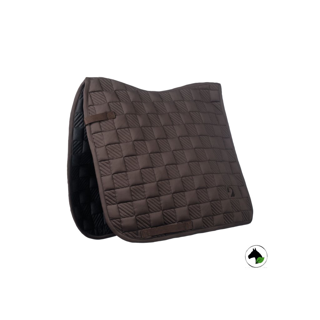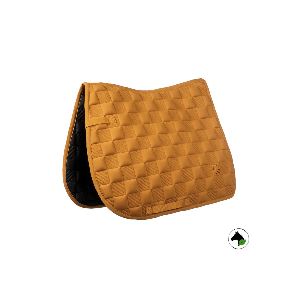 Všestranná podložka pod sedlo včetně barevně sladěných náušníků s vyšitým kontrastním logem a dvojitou kroucenou šňůrou. Spodní materiál z hi-tech materiálu, který výborně absorbuje a odvádí pot od koně.