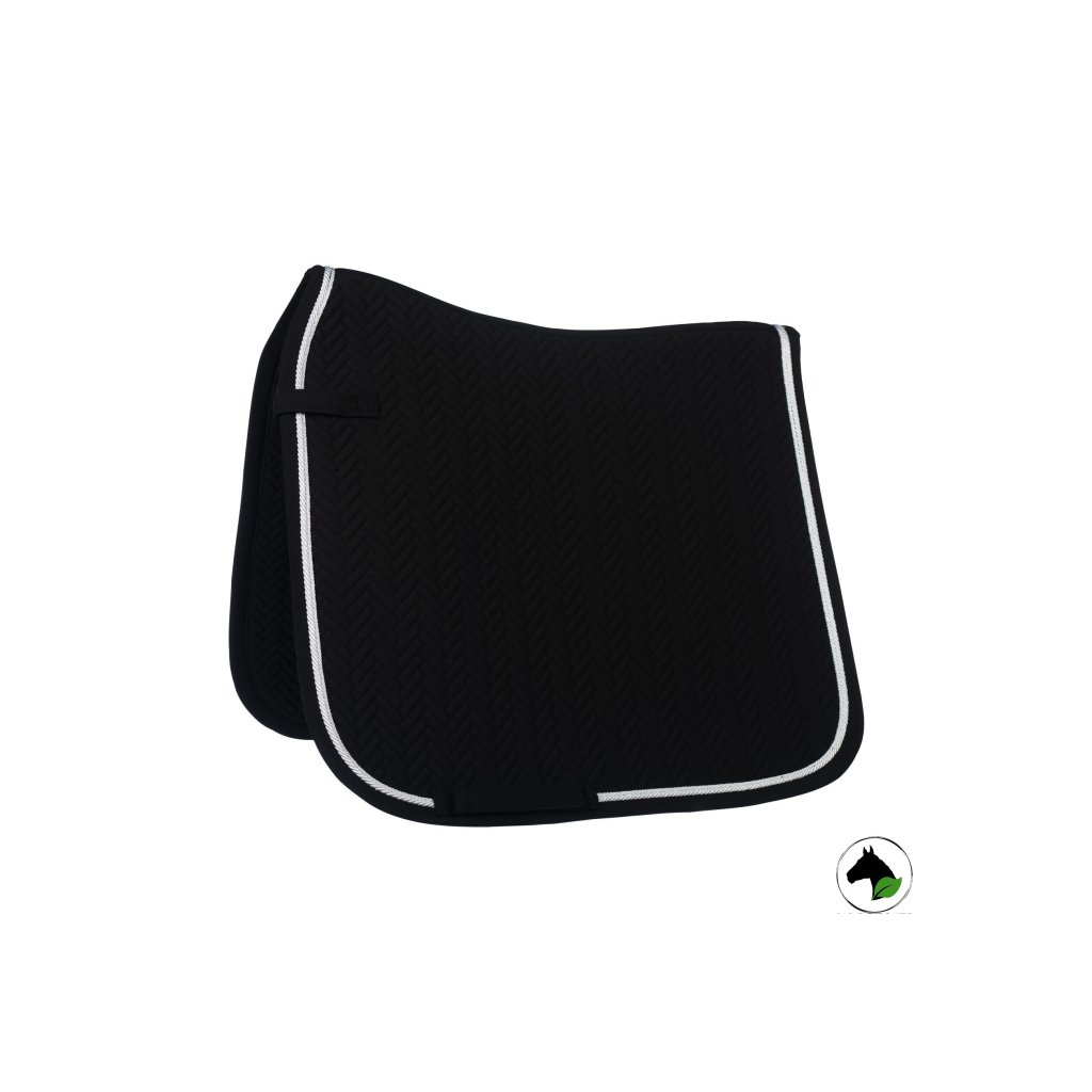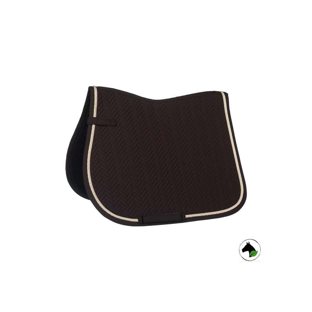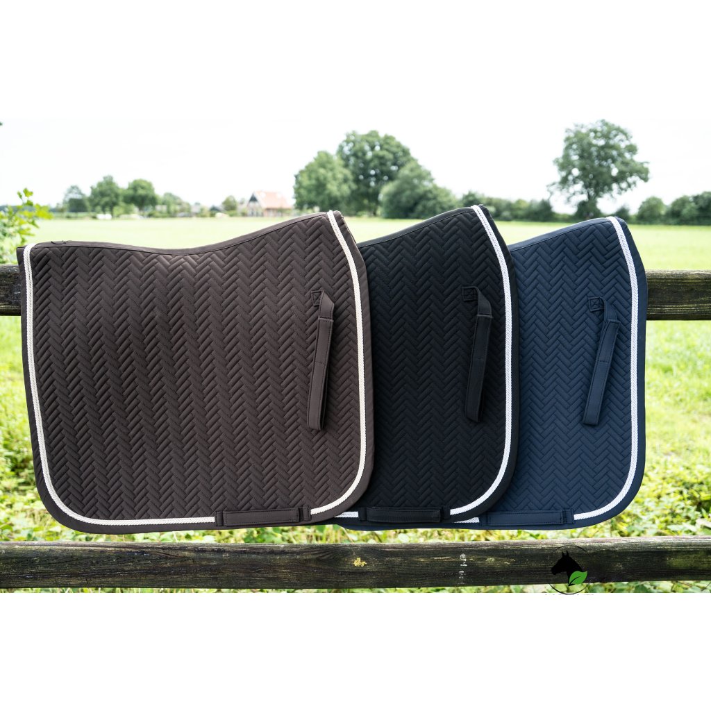 Podsedlová dečka včetně sladěné čabraky na uši s netradičním horizontálním prošitím.