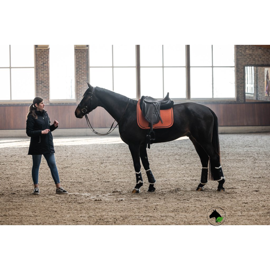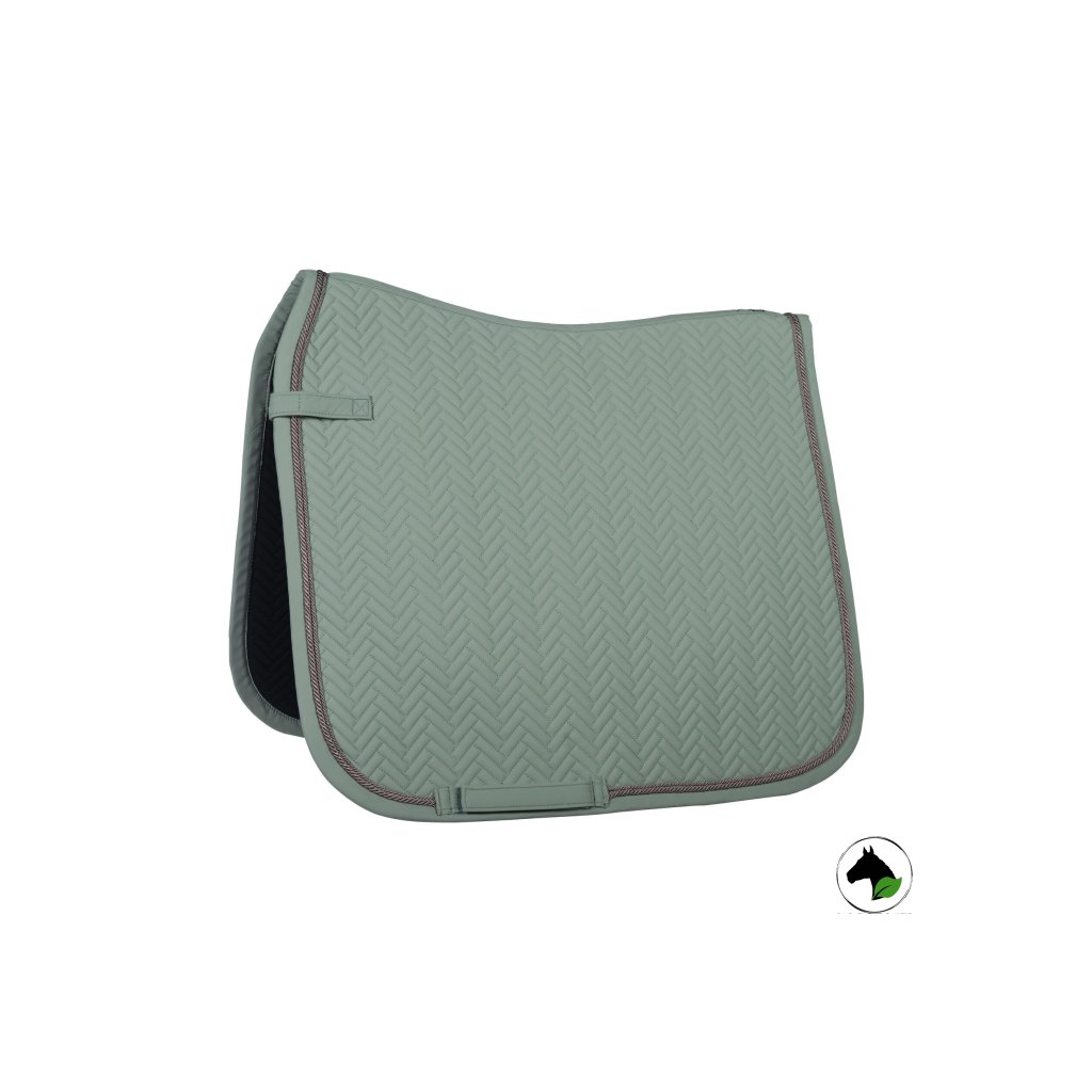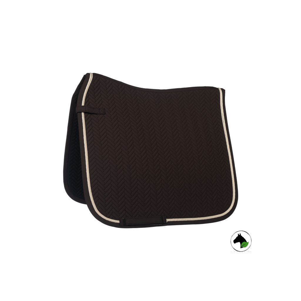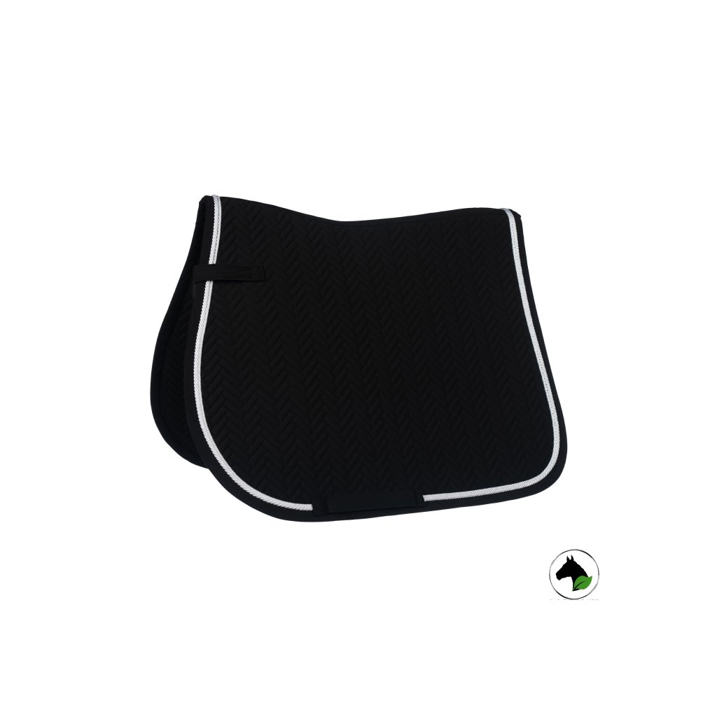 Podsedlová dečka včetně sladěné čabraky na uši s netradičním horizontálním prošitím.