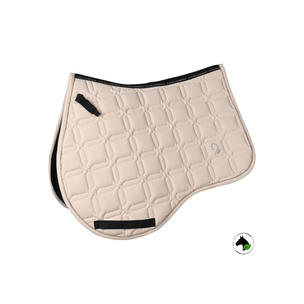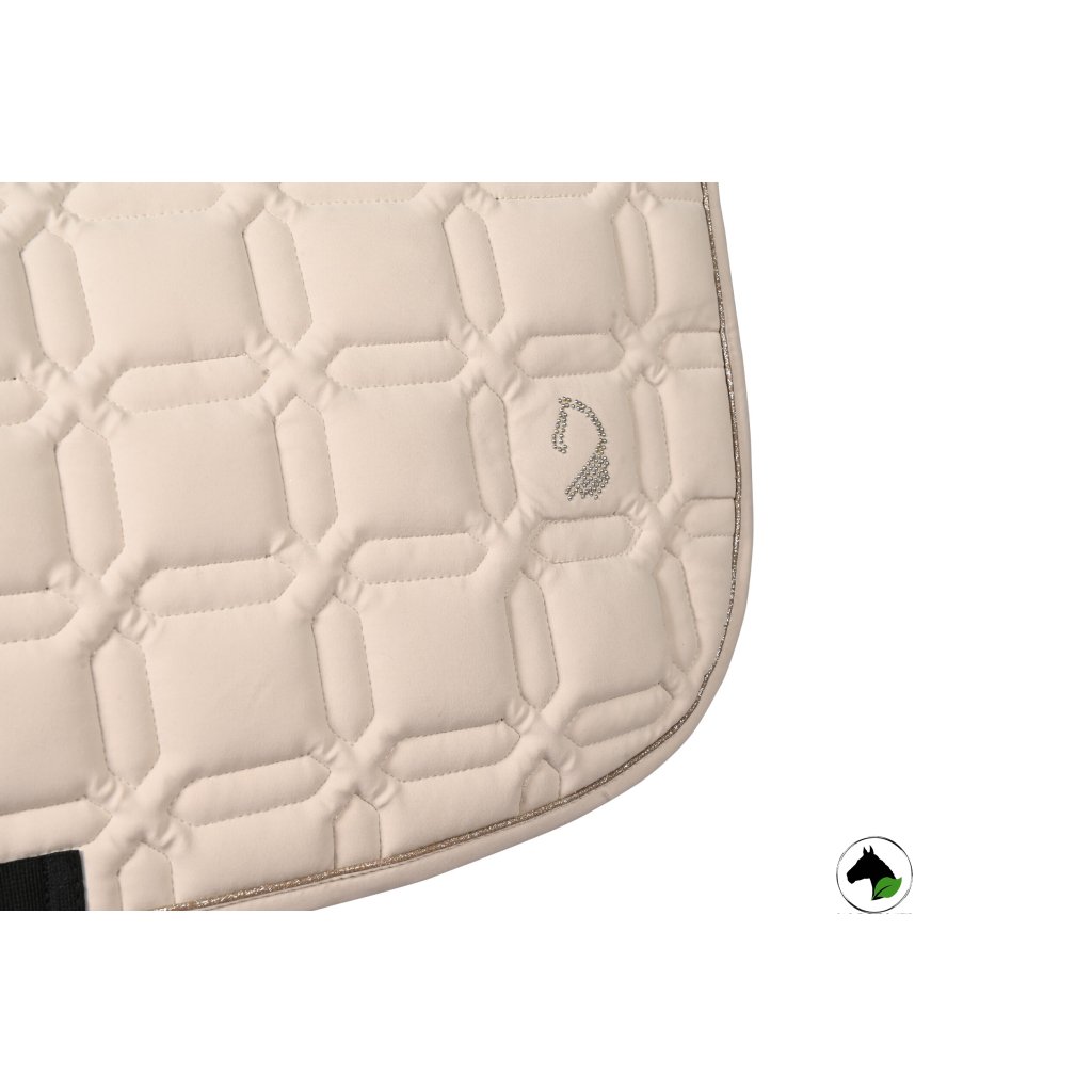 Podsedlová dečka včetně sladěné čabraky na uši s netradičním horizontálním prošitím.