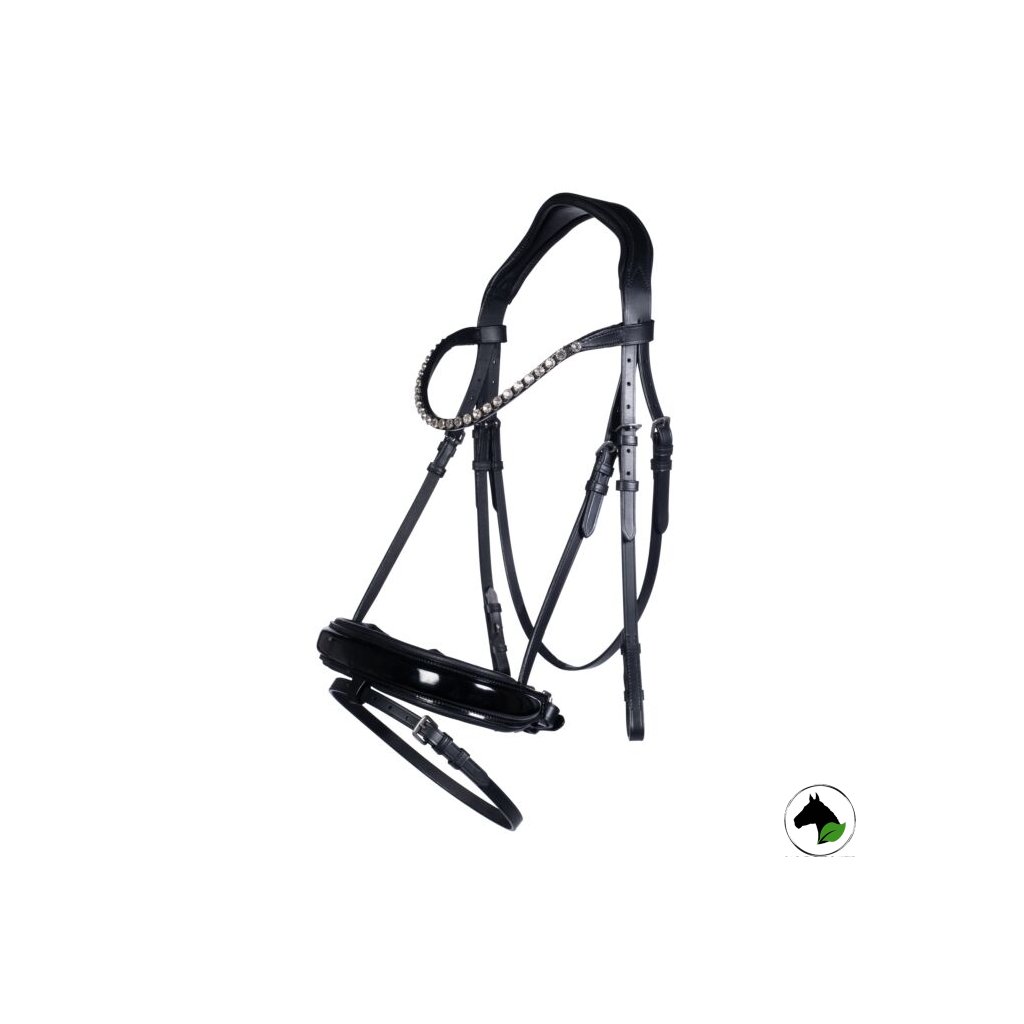 Atraktivní, anatomicky tvarovaná uzdečka s kombinovaným nánosníkem s vysoce kvalitní kůže s měkkým podložením na nánosníku a nátylníku.