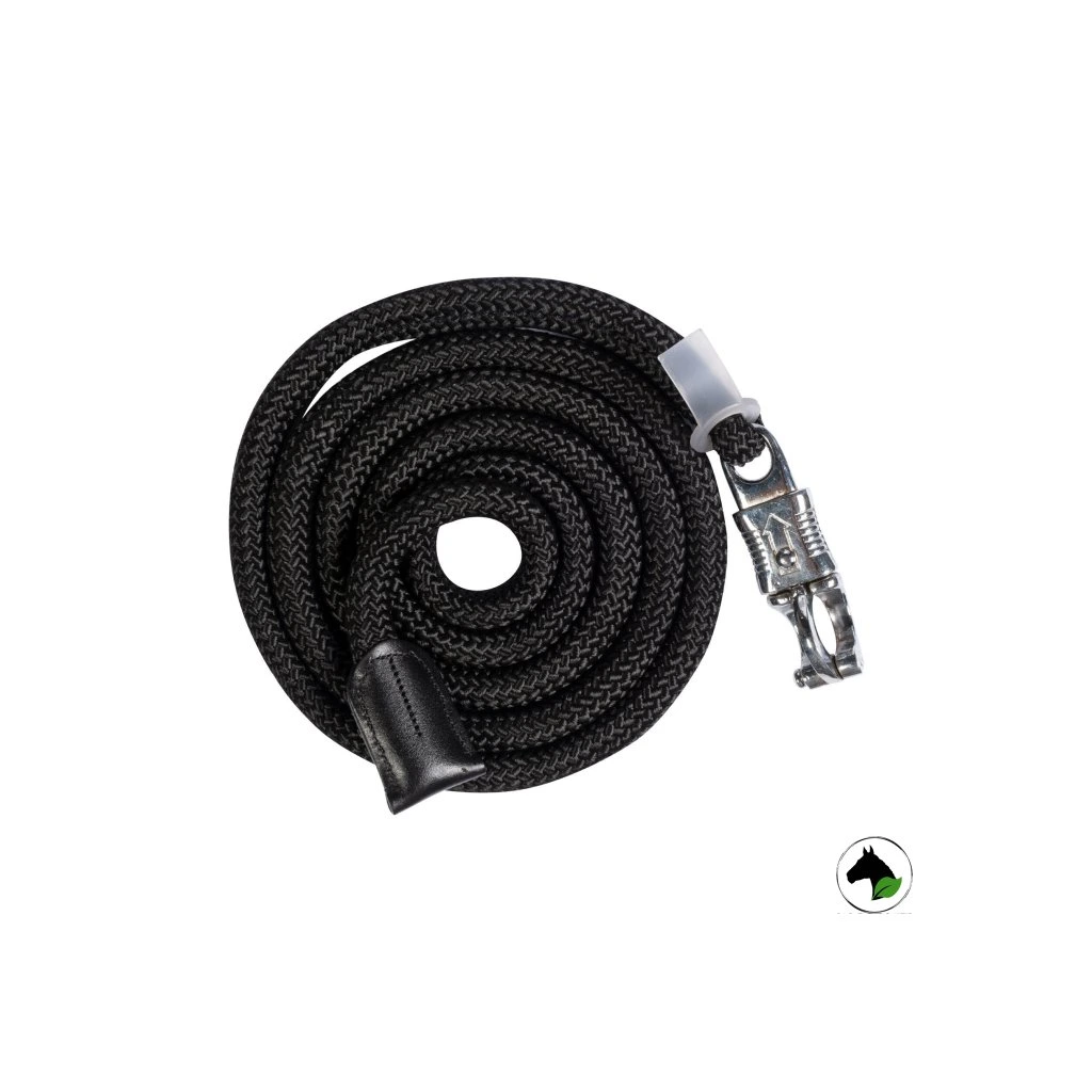 Velmi pevné lanové vodítko s robustní bull karabinou zakončené dvojitý koženým řemínkem.